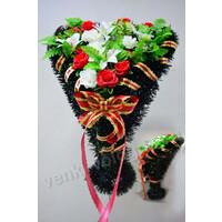 Обращаем Ваше внимание на то, что палитра расцветок искусственных цветов и лент, использованных при изготовлении венков и корзинок, гораздо шире представленной на сайте.
