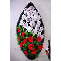 Обращаем Ваше внимание на то, что палитра расцветок искусственных цветов и лент, использованных при изготовлении венков и корзинок, гораздо шире представленной на сайте.