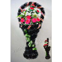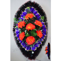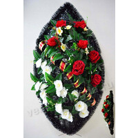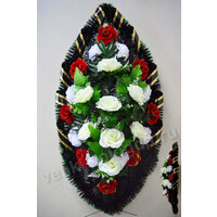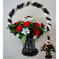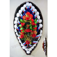 Обращаем Ваше внимание на то, что палитра расцветок искусственных цветов и лент, использованных при изготовлении венков и корзинок, гораздо шире представленной на сайте.