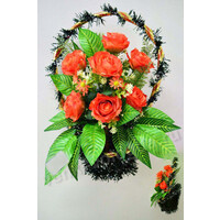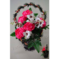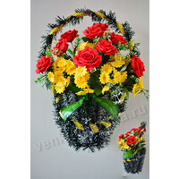 Корзинка ритуальная из искусственных цветов, каркас К15