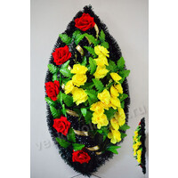 Обращаем Ваше внимание на то, что палитра расцветок искусственных цветов и лент, использованных при изготовлении венков и корзинок, гораздо шире представленной на сайте.